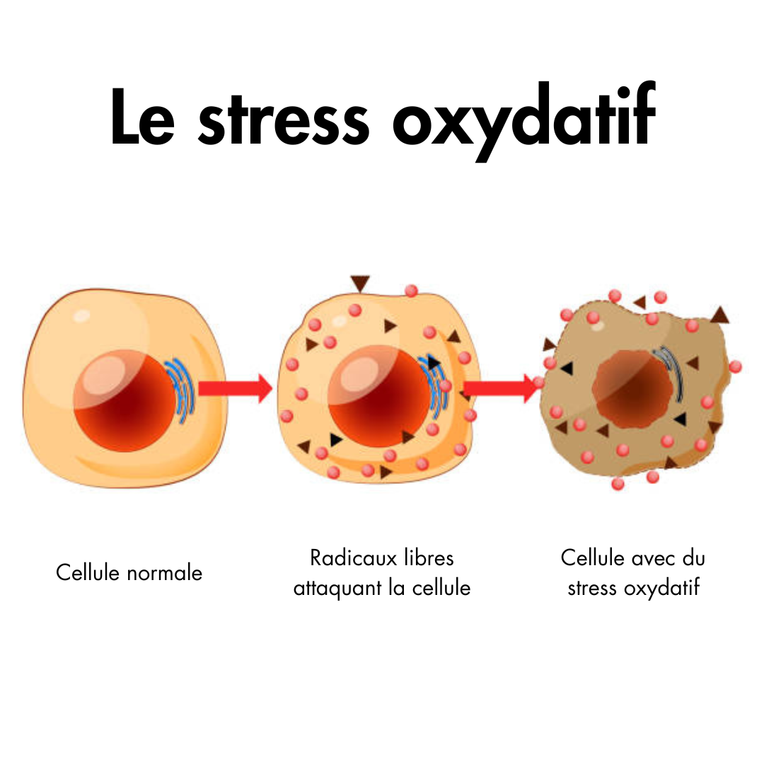 Le stress oxydatif est un déséquilibre entre la production de radicaux libres et la capacité du corps à les neutraliser grâce aux antioxydants. Les radicaux libres sont des molécules instables générées par des facteurs externes (pollution, UV, tabac) et internes (métabolisme, inflammation), qui endommagent les cellules, accélérant ainsi le vieillissement.