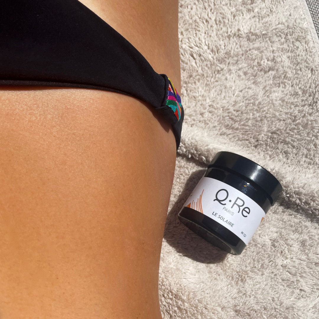 Grâce à notre Q.Re Le solaire, la mélanine de la peau sera activée ce qui permettra de bronzer uniformément plus rapidement. La peau sera également protégée du vieillissement cutané lié à l'exposition au soleil. Notre Q.Re L'hydratant viendra en combo du solaire afin d'hydrater en profondeur la peau et faire perdurer son bronzage tout en lui donnant éclat et beauté.